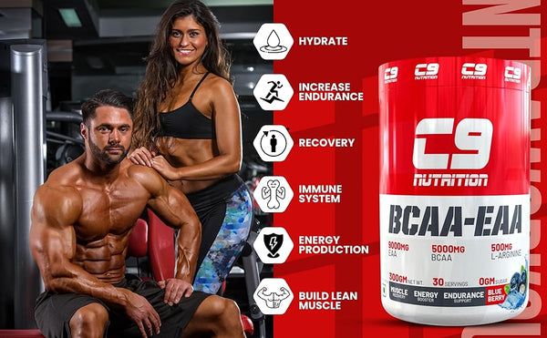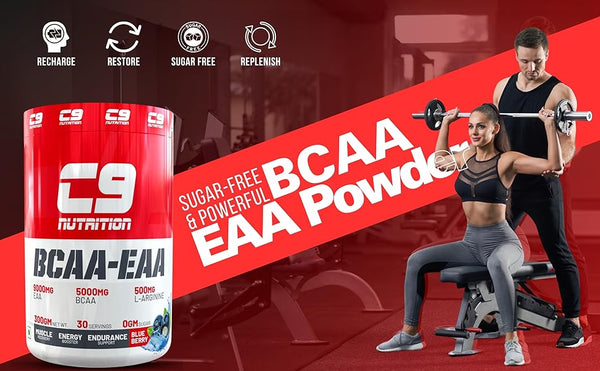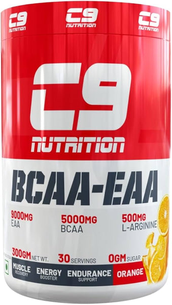 C9 Nutrition BCAA + EAA Powder | 30 Servings | Muscle Recovery & Endurance Drink with 5000mg BCAA, 9000mg EAA, 500 mg L-Arginine | Sugar Free Powerful Intra Workout | Amino Acid Supplements | Vegetarian
