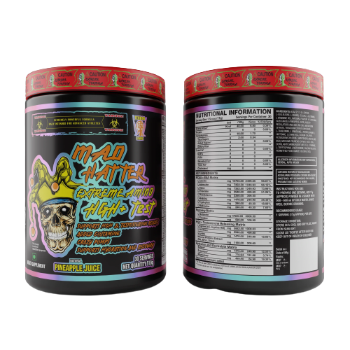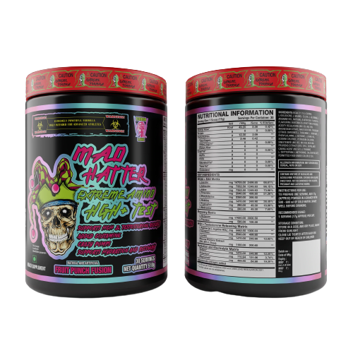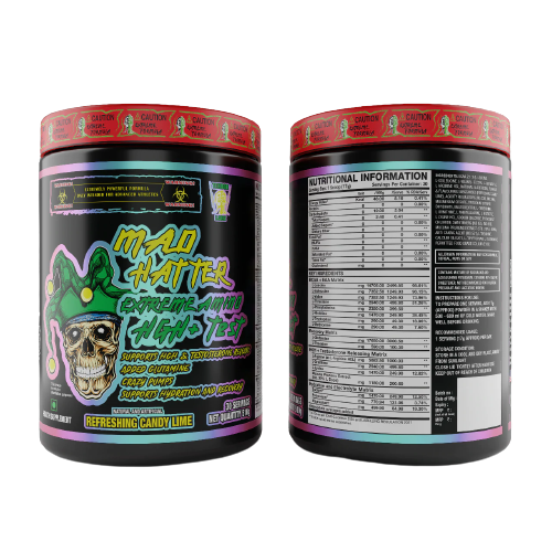Terror Labz Mad Hatter Extreme Amino HGH+TEST is Exclusively designed and formulated for the professional athletes who perform heavy and intense workouts which helps them to Increase their Anabolism and avoid muscle catabolism. It’s ideal for use around workout sessions to provide branch chain and essential amino acids to the working muscles. If you are a natural athlete who wants to gain muscle mass quickly, Perform at his best, and are serious about recovery, Mad Hatter BCAA is the right choice.