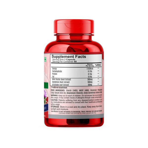 Potent Plant Extracts: Contains standardized extracts of Artichoke and Milk Thistle, ensuring a consistent and effective dose of active compounds.