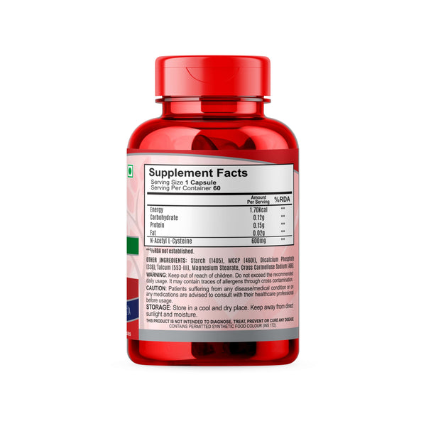 Key Ingredients Per Serving: 600 mg of N-Acetyl L-Cysteine (NAC)