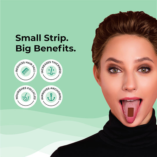 Oral Thin Strips: The product is a convenient, dissolvable strip that you place on your tongue. It melts instantly, requiring no water, making it easy to take on the go.