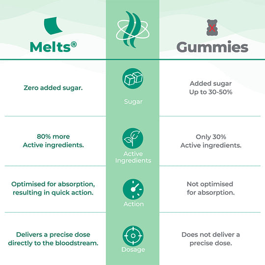 Place one melts strip on your tongue and allow it to dissolve completely. It is recommended to take one strip daily, preferably after a meal. No water is required.