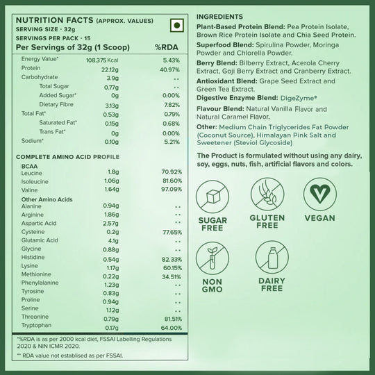 Wellbeing Nutrition Organic Vegan Plant Protein Isolate Powder | 22g Protein, 5g BCAA, 3g Fiber Pea & Brown Rice Protein, Superfoods, Digestive Enzymes | Easy to Digest, 500gm