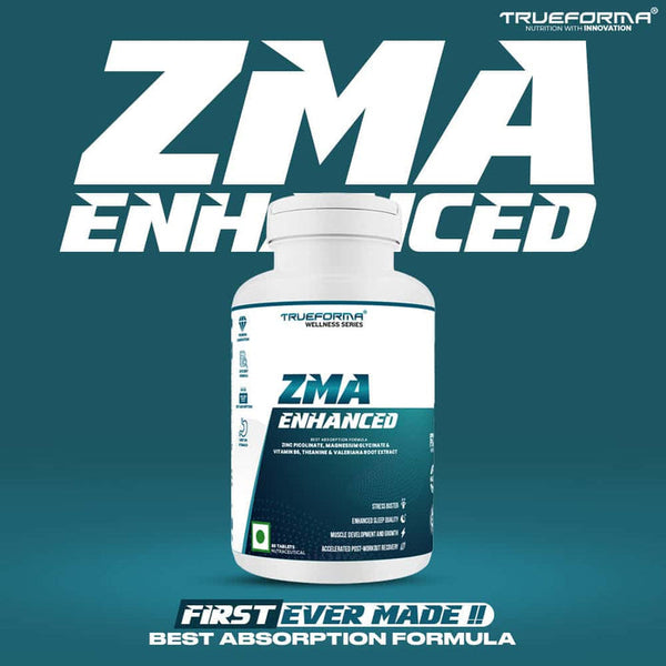 Trueforma ZMA Enhanced is a dietary supplement designed to support three crucial aspects of health for active individuals: sleep, muscle recovery, and overall wellness. The core of this product is the ZMA formula, which is a well-known combination of Zinc, Magnesium, and Vitamin B6.