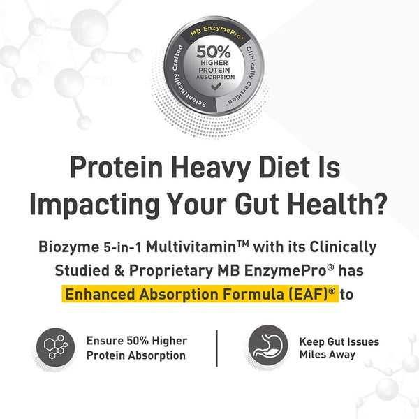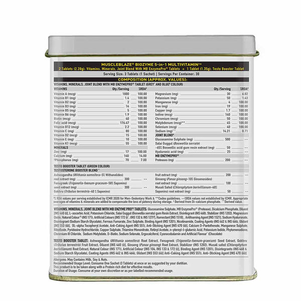 MuscleBlaze Biozyme Daily Multivitamin|5-In-1 Supplement With Vitamins,Minerals,Joint,T-Booster Blend|With Us Patent Published Eafa|For Higher Energy & Improved Performance,1 Count,90 Capsules