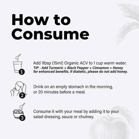 Supports Weight Management: ACV's acetic acid is known to help suppress appetite, boost metabolism, and promote a feeling of fullness.